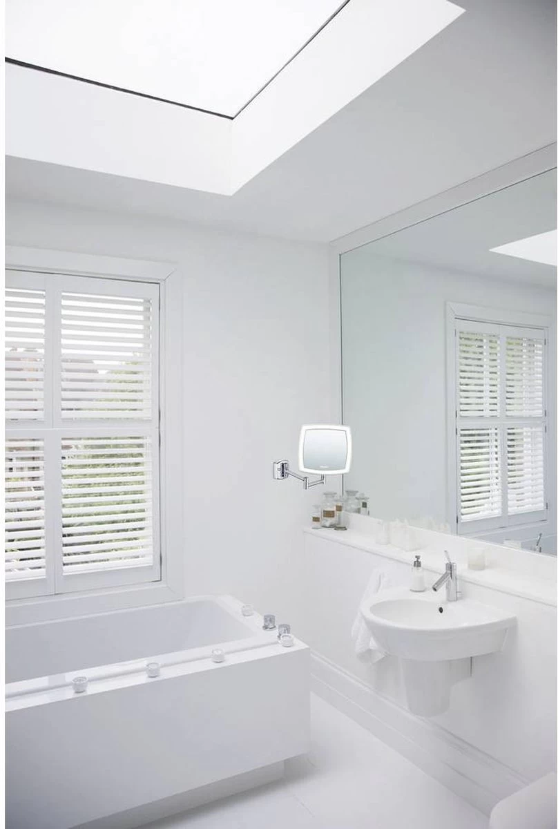 Deze wand-gemonteerde Beurer verlichte cosmeticaspiegel BS 89 is perfect voor uw dagelijkse gezichtsverzorging en het aanbrengen van make-up. De spiegel kan eenvoudig aan de muur bevestigd worden en hij wordt omlijst door 36 heldere LEDs. Hij heeft één kant met 5 keer vergroting. De spiegel heeft een 3-stapsdimmer voor optimale verlichting en hij schakelt automatisch uit wanneer hij 10 minuten niet gebruikt wordt. De spiegel werkt op 3 AA 1,5 V batterijen, die zijn inbegrepen bij de levering.