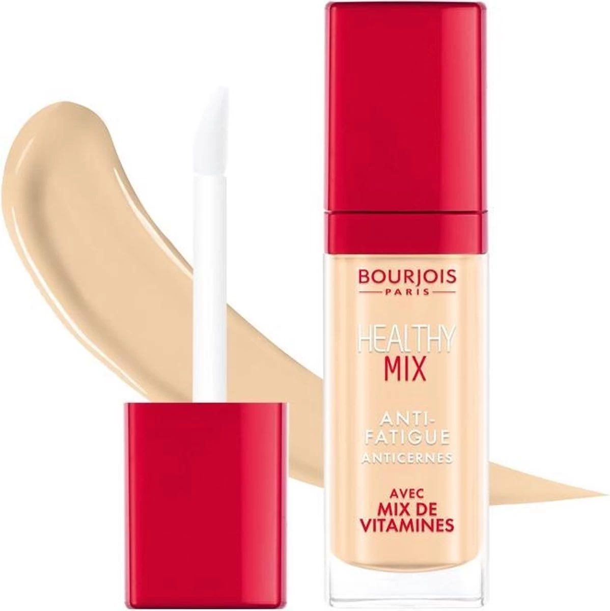 Ben je het zat om er vermoeid uit te zien? De Bourjois Healthy Mix Anti-vermoiedheid Make up Concealer corrigeert onmiddellijk alle tekenen van vermoeidheid voor een ontspannen uitstraling. De makkelijk aan te brengen formule mengt zich gemakkelijk in de huid en bedekt donkere kringen onder de ogen zonder strepen of vlekken. Met de mix van vitamine C, E en B5 is de Healthy Mix concealer de perfecte mix wanneer je de stralende en gezonde huid wilt. Gebruik de zachte, fluwelen applicator voor nauwkeurige applicatie. Om donkere kringen rond de ogen tegen te gaan, is Healthy Mix Anti-Fatigue Concealer de beste aanvulling op je ochtendroutine.