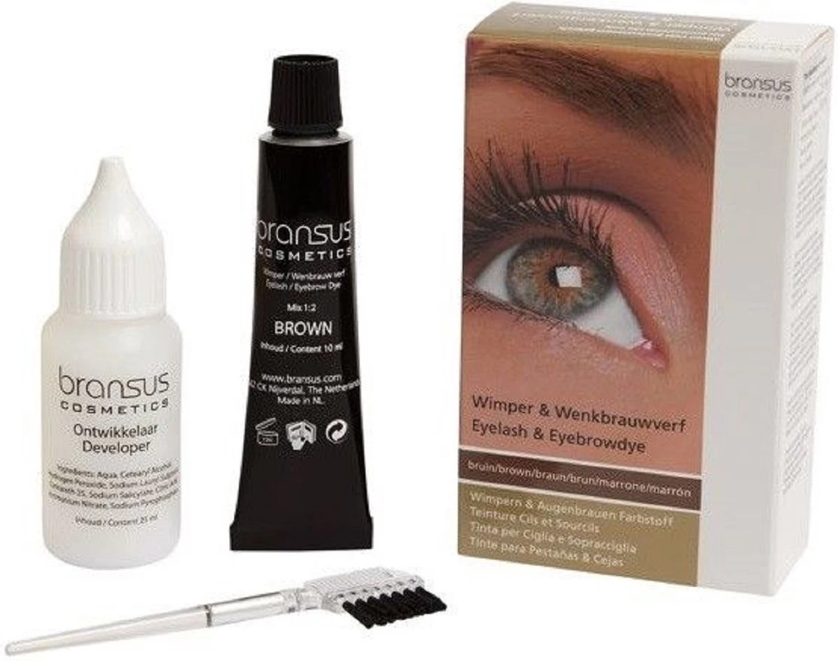 Complete set wimper/wenkbrauwverf in 2 kleuren Bruin en Zwart , bestaat uit verf, waterstofperoxide gel, handschoen, wimper / wenkbrauw borsteltje, oogbescherming pads en een duidelijke gebruiksaanwijzing.