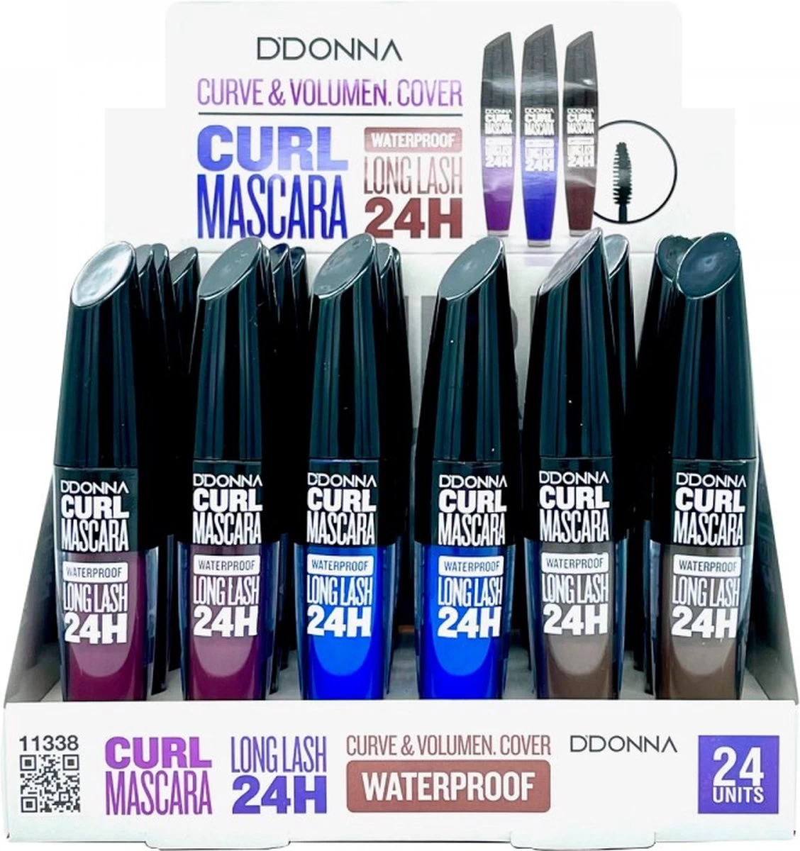 * D’DONNA CURL MASCARA WATERPROOF LONG LASH 24H * neemt een geperfectioneerde formule aan, die zowel onmiddellijk XXL-volume als wimper-per-wimperdefinitie biedt, voor uitwaaierende wimpers die vermenigvuldigd lijken!