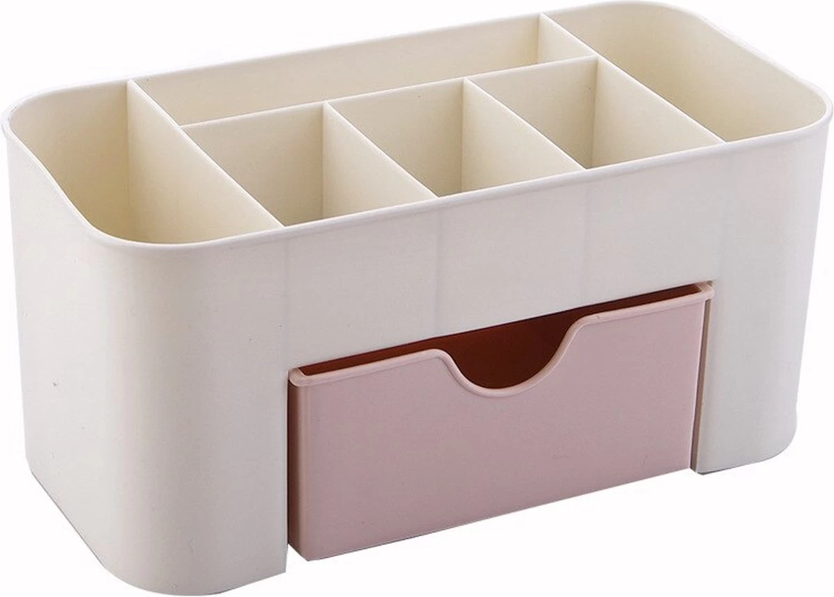 De Make-up Organiser is praktisch ingedeeld in diverse compartimenten zodat je er diverse verpakkingen en flesjes met producten in kwijt kunt. Daarnaast bevat de organiser ook een kleine lade, waar je bijvoorbeeld watjes of sieraden in kunt opbergen. Houd eenvoudig overzicht over al je producten en heb je benodigdheden altijd bij de hand met deze handige Make-up Organiser.