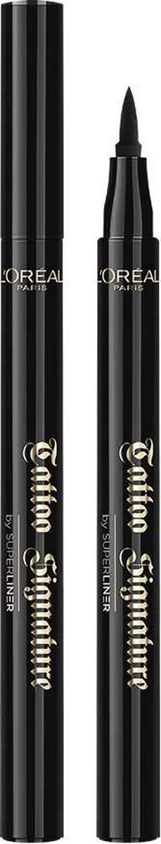 De Superliner Tatouage Signature Black van L’Oréal Paris (voorheen Superliner Tattoo Signature) zorgt voor precieze lijnen rondom de ogen voor een intense look. De vloeibare eyeliner heeft een speciale stiftapplicator zodat je precieze lijnen kunt tekenen voor bijvoorbeeld een vrouwelijke winged eyeliner look of juist een edgy look. De kleurpigmenten in de waterproof eyeliner geven een ultrazwart resultaat zodat je in één beweging de eyeliner aanbrengt. Tover jouw ogen om in een tattoo kunstwerk en laat jouw ogen spreken als nooit tevoren.