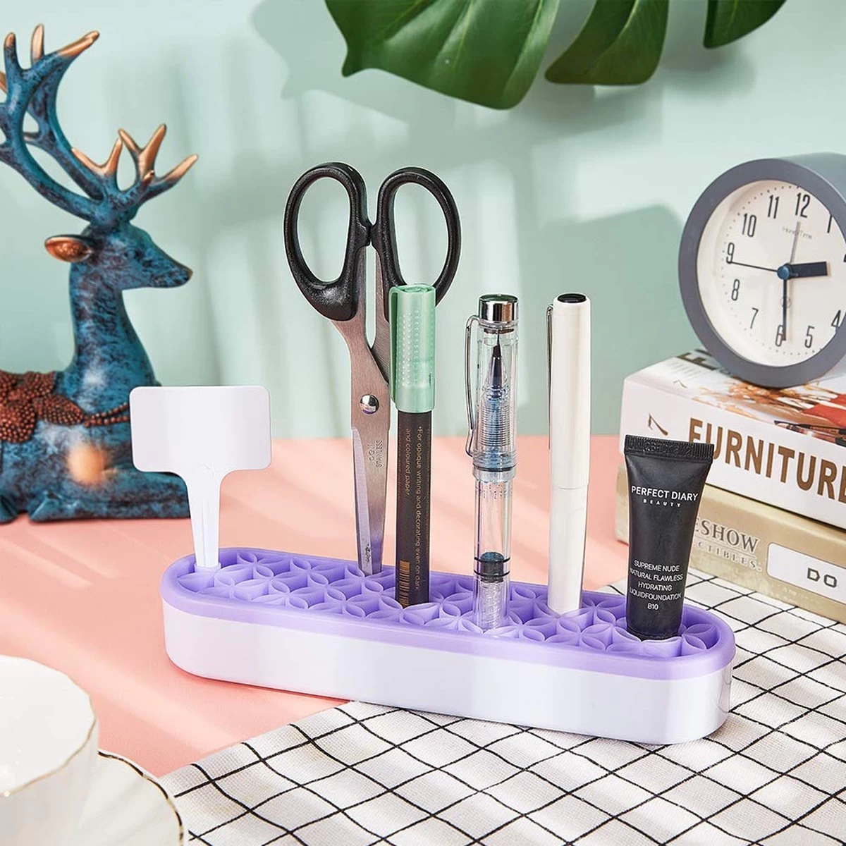 Iedereen wil toch georganiseerd te werk gaan? Met deze siliconen houder van Pazzo Goods gaat dat zeker lukken. De handige methode om je borstels, kwasten, pennen, scharen op te bergen. De houder is verkrijgbaar in 4 kleuren Grijs, Roze, Watermelon en Paars.