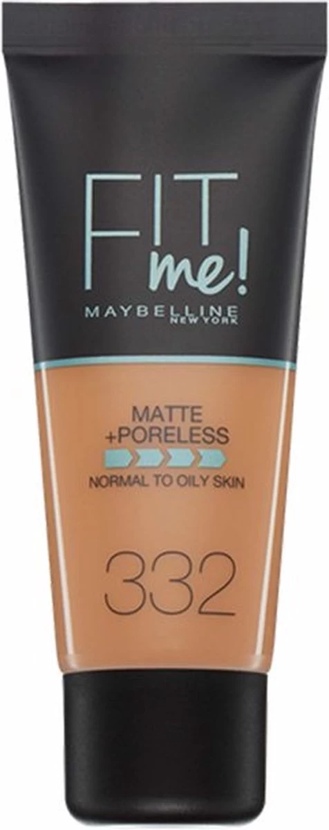 Maybelline New York Fit Me Matte & Poreless Foundation 332 Golden Caramel is een medium dekkende foundation met een matte finish voor de normale en vette huid