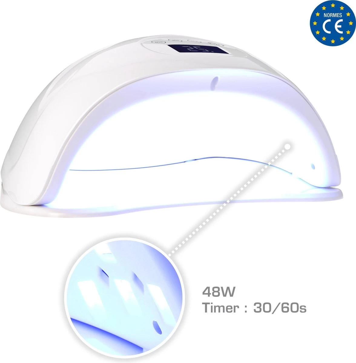 Hoe meer neons erin een lamp zitten, hoe groter de lichtintensiteit. De Meanail Sunshine heeft 24 LED lichtjes die allemaal zo dicht mogelijk bij de nagel geplaatst zijn voor een snelle en efficiënte polymerisatie op ALLE nagels.