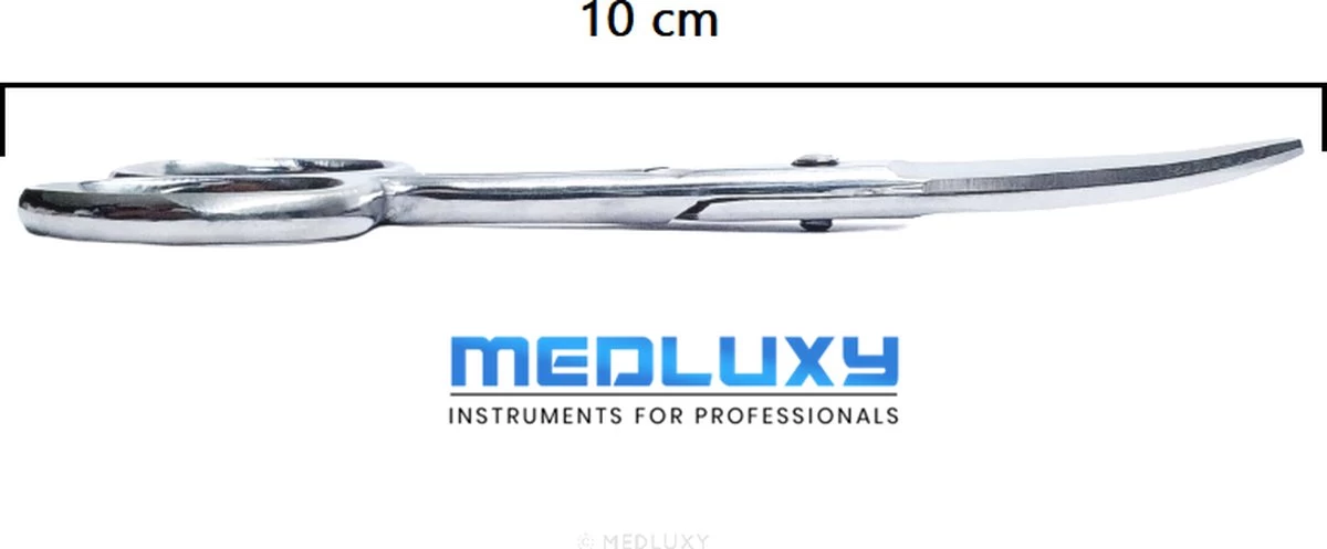 De MEDLUXY Nagelschaar met gebogen bladen uit de semi professionele serie is ideaal voor pedicure en manicure. Het knippen van de nagels gaat met deze nagelschaartje gemakkelijk. De totale lengte is 10 cm. Is met de hand vervaardigd van hoogwaardige kwaliteit roestvrij staal. Geschikt voor professioneel gebruik.