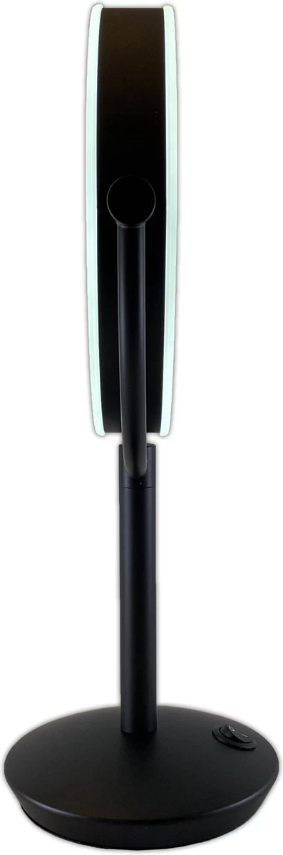 Strakke en uiterst stevige metalen make-up spiegel mat zwart die voorzien is van LED. De LED verlichting maakt deze spiegel niet alleen energie zuinig maar geeft ook nog eens een helder wit daglicht af, hierdoor kunt u zich perfect opmaken, epileren of uw lenzen aanbrengen. De spiegel werkt op 4AA batterijen of doormiddel van de USB stroomkabel, beide worden ook meegeleverd. De spiegel is aan beide zijden te gebruiken, met aan de ene zijde een normale vergroting en aan de andere zijde een 10x vergroting. U kunt de spiegel zelf roteren zodat u makkelijk kunt switchen tussen de normale en de vergrotende kant. De spiegel heeft een doorsnee van 19cm. Let op de stroomkabel laad de batterijen niet op maar is bedoeld om de spiegel van stroom te voorzien, handig als deze op een vaste plek staat.