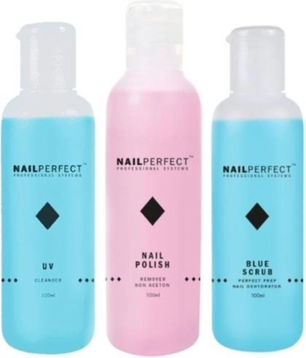 Nagel Vloeistoffen Set Voor Het Voorbereiden En Verwijderen Van Gel Nagels – UV Cleanser – Remover – Blue Scrub – 300 Ml