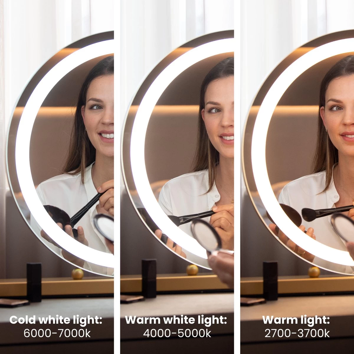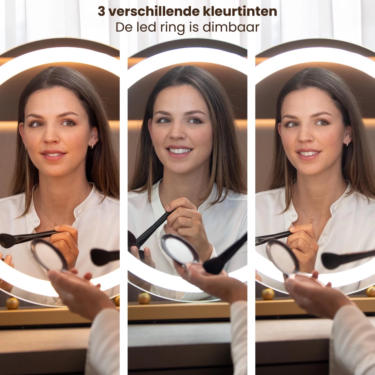 Ga zelfverzekerd de deur uit met de make-up spiegel van Nuvoo. Met deze spiegel is uw make-up altijd tip top in orde, haal uw ware schoonheid naar voren en voel uzelf op het mooist. U kunt onze spiegels omschrijven als een full option spiegel, een spiegel waar je eindeloos veel plezier, opties en schoonheid uit kunt halen. Onze spiegels geven u hetgeen wat u wilt: een professionele toevoeging aan uw leven, iets waar u trots op mag zijn. Door middel van de LED lampen met velen instellingen profiteert u altijd van het perfecte make-up licht. Geef uw dagelijkse make-up routine weer perfectie en luxe.