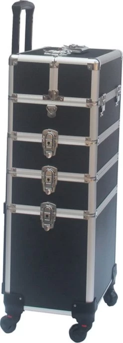 VDD Aluminium Visagie Kappers Koffer Trolley – Make-up Schmink Nagel Koffer Trolley – Zwart