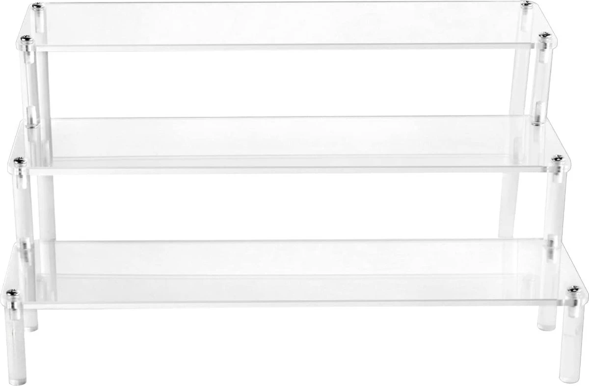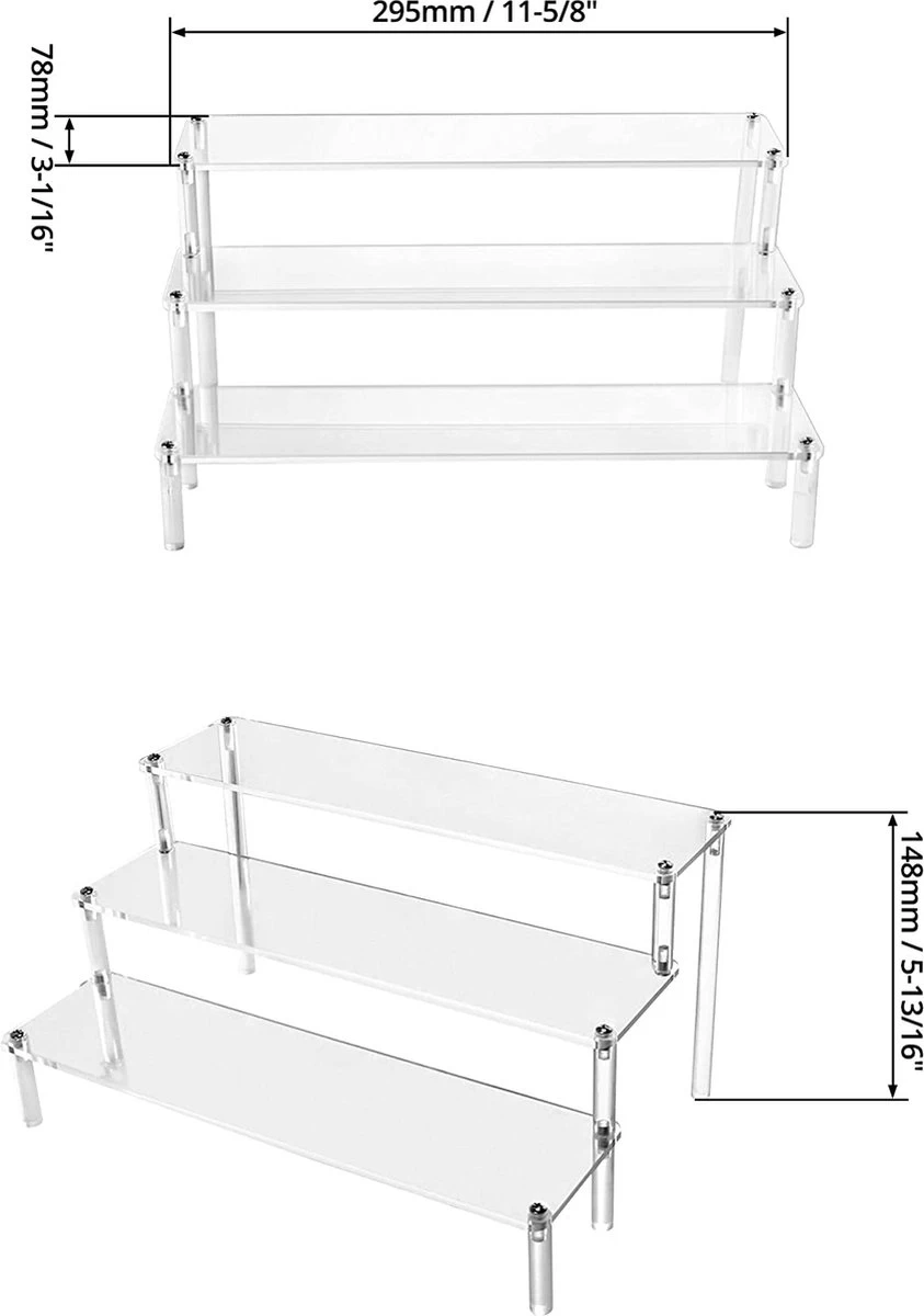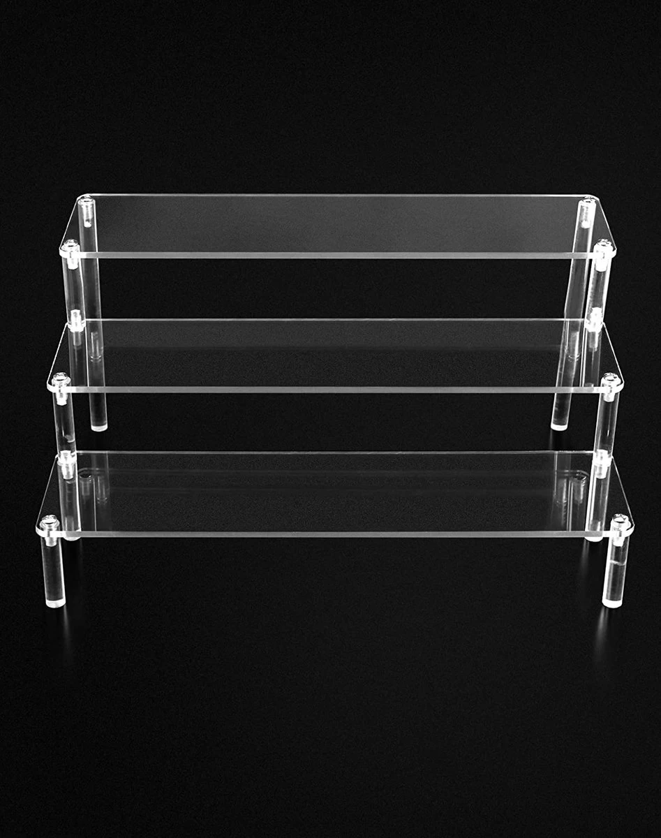 QWORK 3-laags Acryl Displaystandaard, Transparant Acryl Display Riser Plank Voor Figuren, Sieraden, Cupcake, Lippenstift, Nagellak, Kruiden, 30x21x15cm