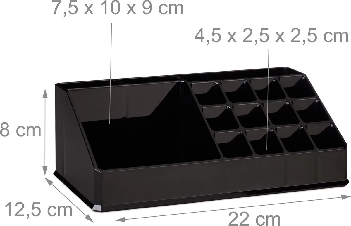Relaxdays Cosmetica Organizer – Cosmeticahouder – Make Up Toren – Doorzichtig – 16 Vakken – Zwart