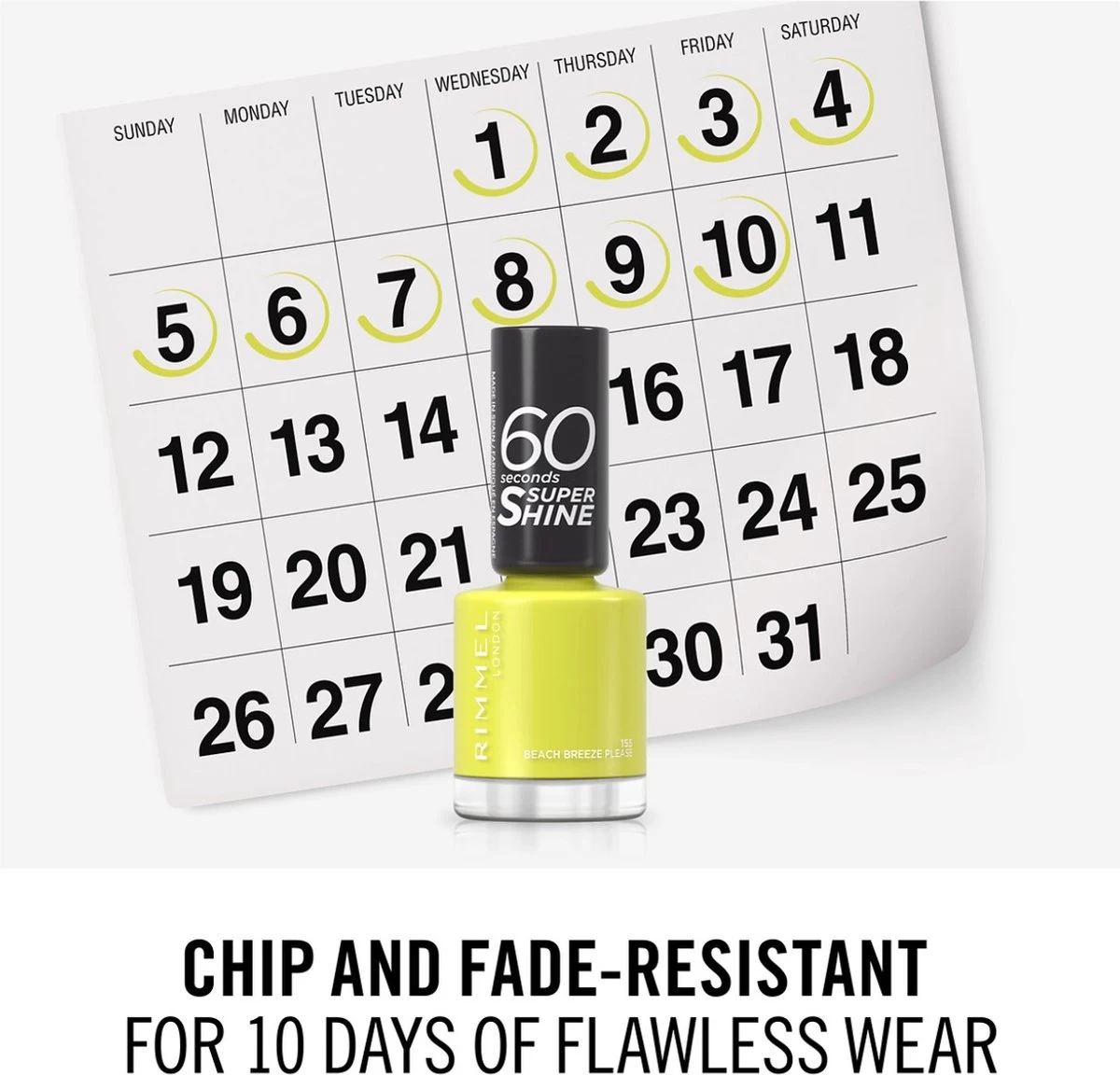 ‘Shiny en verzorgde nagels in één minuut zijn binnen handbereik met de Rimmel London 60 seconds Supershine nagellak! Met de sneldrogende formule zijn jouw nagels snel droog. Rimmel laat jou zijn wie jij bent. En net als London, staat Rimmel voor cool, onvoorspelbaar en edgy. Zelfexpressie zonder regels: wees jezelf, altijd echt en toegankelijk. Live the London Look!