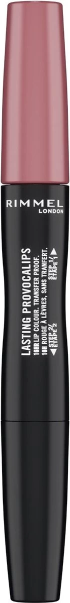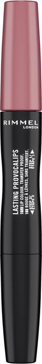 ‘Rimmel London Lasting Provocalips is een 2-staps vloeibare lippenstift voor een ingesloten, krachtige kleur en hydratatie. Het zorgt voor een transferbestendige kleur, glans en hydratatie die tot 16 uur aanhoudt.