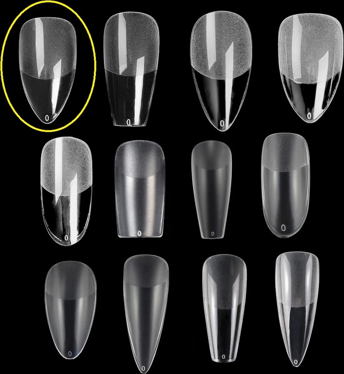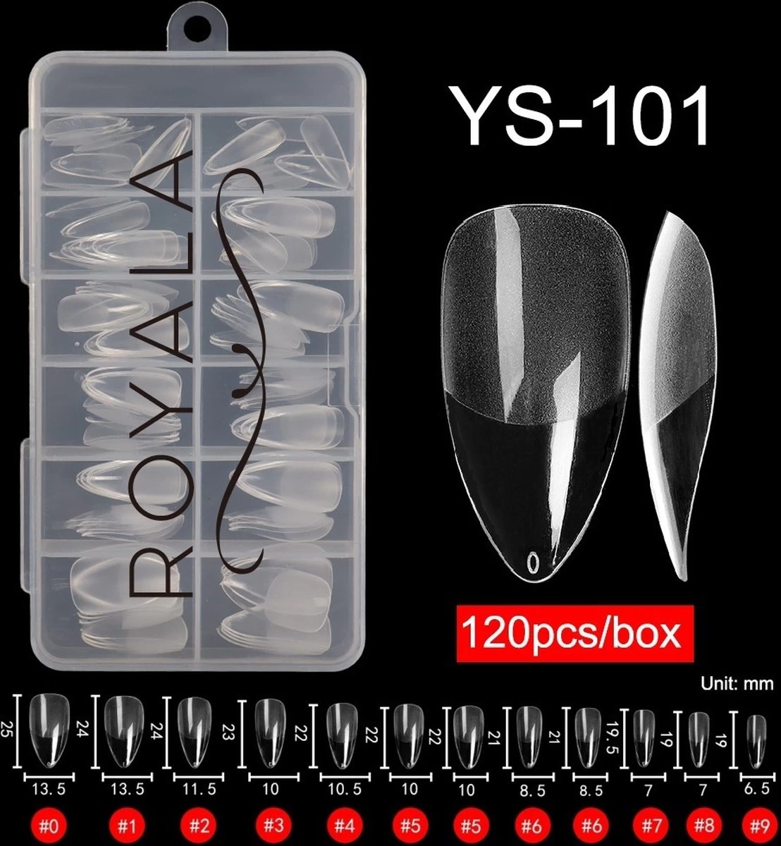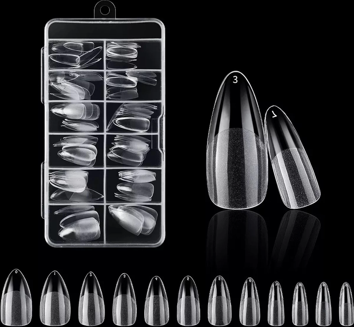 120 stuks Almond / Half Bottom Frosted / Full Cover / 12 maten / in Tipbox