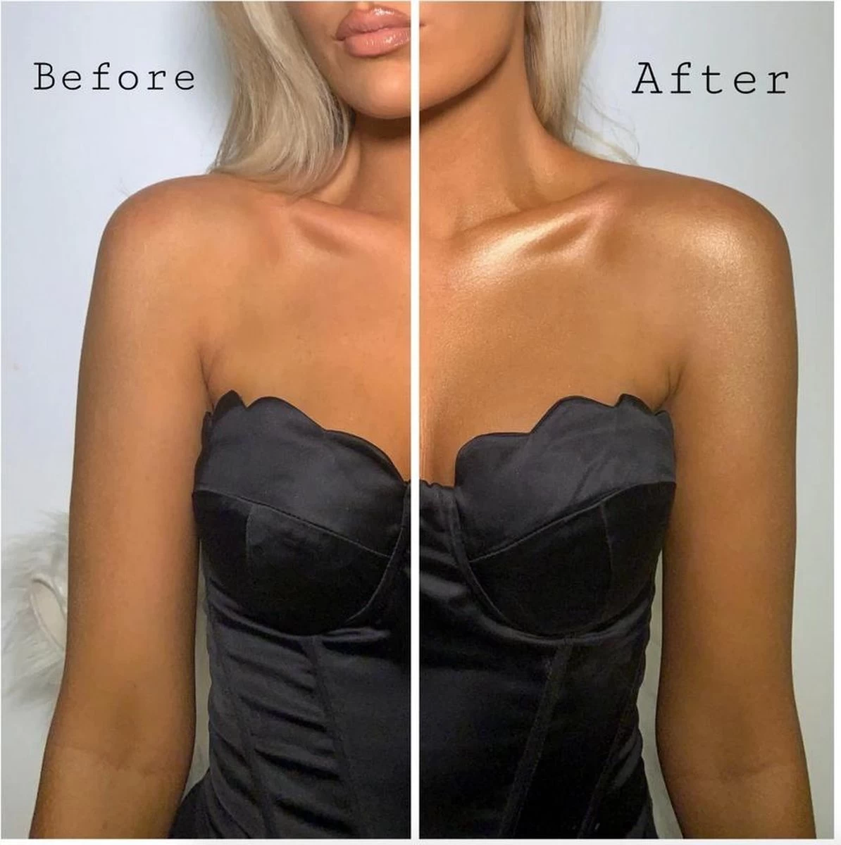 The buttery golden-bronzed formula melts onto the skin leaving a smooth velvet finish, never tacky or oily.