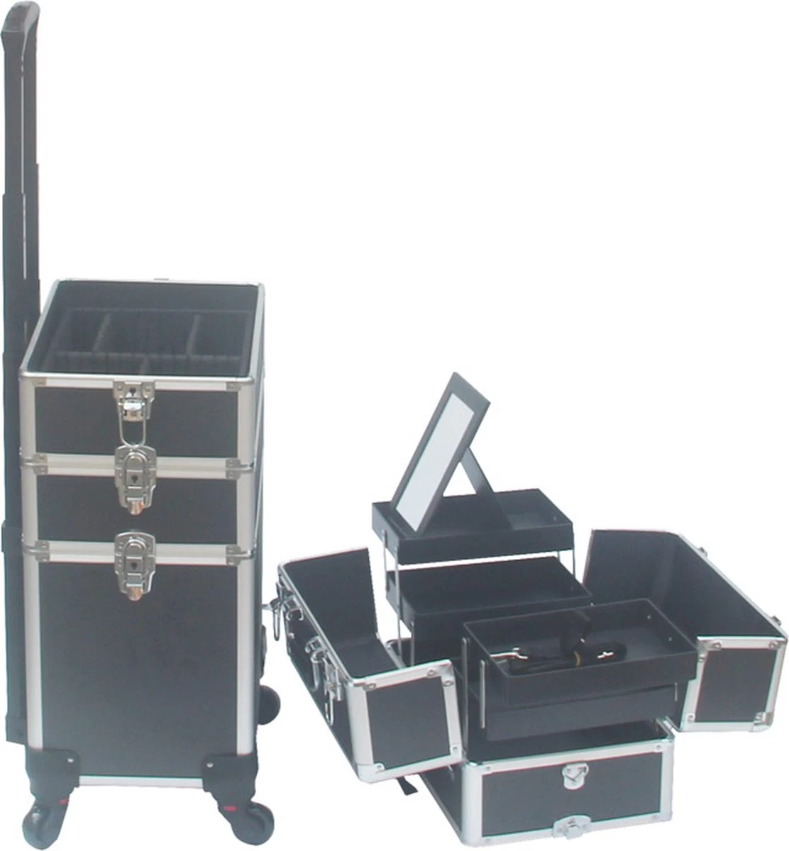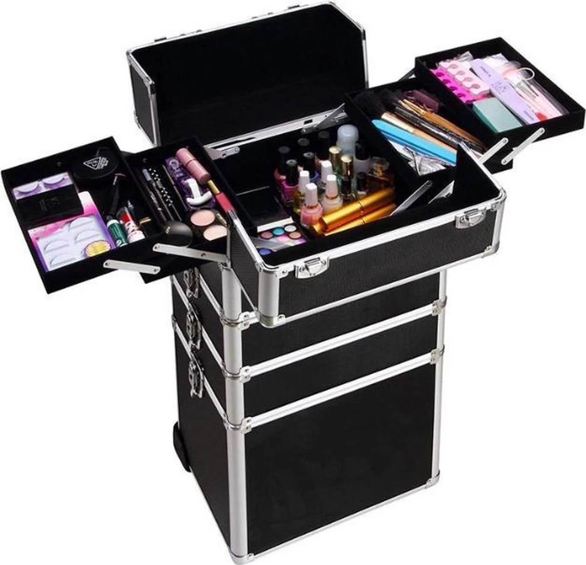 VDD Aluminium Visagie Kappers Koffer Trolley – Make-up Schmink Nagel Koffer Trolley – Zwart