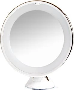 Vergroot Make Up En Scheer Spiegel Met LED Verlichting – 10x Vegroting En Natuurlijk Licht Voor Cosmetica/Scheren/Epileren – 360° Graden Verstelbare Zuignap En Wandbevestiging – Badkamer/Douche/Slaapkamer – Rond – Wit