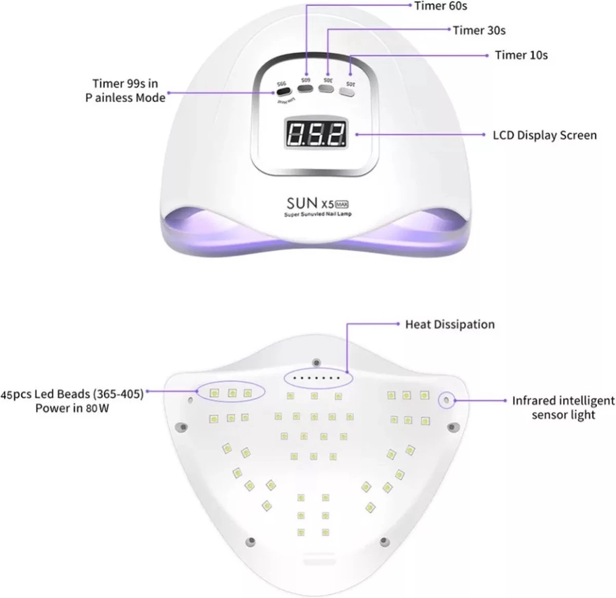 Victoria Nails Pro – 150W/45 LEDs – 2 In 1 UV/leD Lamp – 2021 SUNX5 MAX UV/LED Lamp – Manicure/Pedicure Handen En Voeten – Gellak – Gelnagels – Acrylnagels – Top Coat-Led Nagellamp-Uv Nagellamp-Nagels-Nageldroger – Nagel Tafellamp