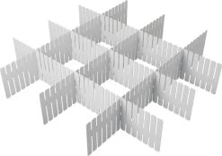 Heeft u last van een rommelige lade, of probeert u dit juist te voorkomen? In dat geval kan deze ladeverdeler gebruikt worden om uw lades te organizen. Deze ladeverdelers zijn geschikt voor ieder soort lade, maar kunnen ook op een plank gebruikt worden. Het is een ideaal hulpmiddel om uw lades, indien nodig, in verschillende delen te verdelen en om uw kastplank te organiseren. Maak uw huis in een paar minuten netjes, overzichtelijk en help het makkelijk vindbaar te maken van uw spullen. De ladeverdelers kunnen in elkaar worden geschoven of op maat worden geknipt om de ideale indeling te krijgen.